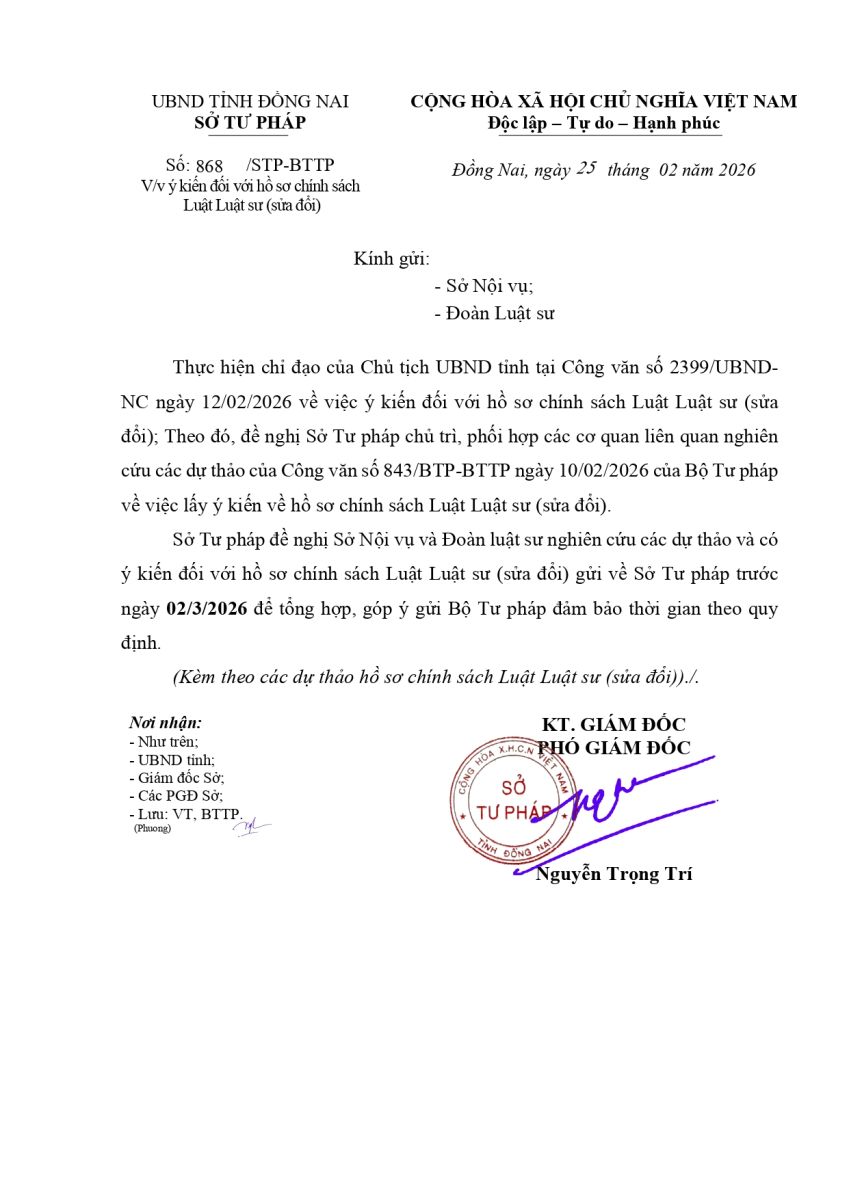 Thủ Tục Đăng Ký Tập Sự Hành Nghề Luật Sư Tại Đoàn Luật Sư Tỉnh Đồng Nai.