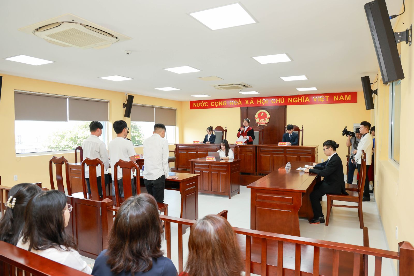 Sau phần nghi thức khánh thành, các đại biểu cùng giảng viên và sinh viên đã tham dự phiên tòa giả định do chính sinh viên LHU đảm nhận các vai trò như thẩm phán, kiểm sát viên, luật sư, bị cáo... dưới sự hướng dẫn của giảng viên chuyên môn và các luật sư của Đoàn.