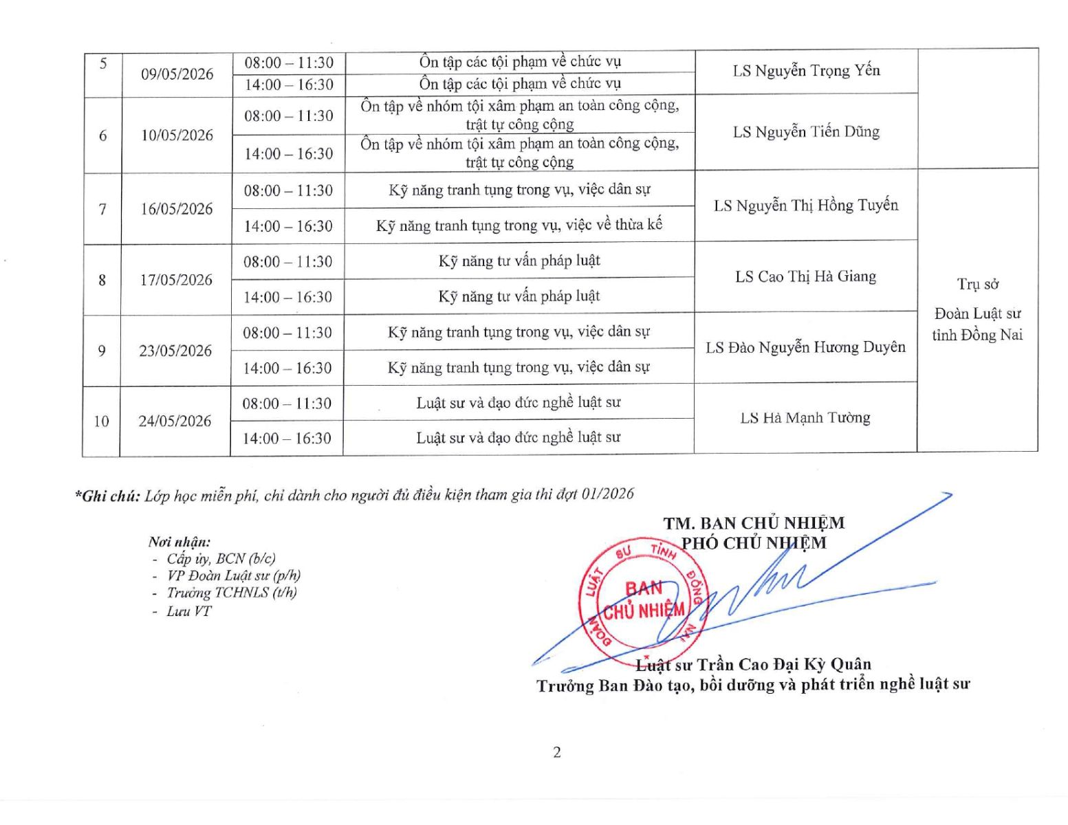 THÔNG BÁO CHIÊU SINH LỚP ĐÀO TẠO NGHỀ LUẬT SƯ NĂM 2026 TẠI TỈNH ĐỒNG NAI - 05/03/2026 | 15:33 PM